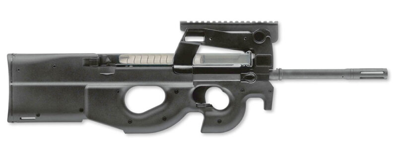 While the FN PS90 might be the least different gun of the list, all bullpup firearms are different, especially bullpups chambered in 5.7×28. Sure, the Five Seven is a great round, but no one is going to call it standard. The PS90 is a closed-bolt blowback system with a 16-inch, hammer-forge, chrome-lined barrel and ported muzzle brake. This makes the whole rifle just over 26 inches. It also comes with a sliding trigger, enlarge trigger guard and ambidextrous controls. The accessory rail allows mounting optics and it even has backup iron sights.