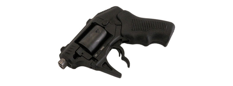 Shooters have long loved double barrels, both in long guns and handguns, such as derringers. Most, however, are not designed to fire both barrels at once, especially from a revolver. The Standard Mfg. S333 Thunderstruck fires two .22 WMR rounds, one from each barrel, at the same time, for a total of eight shots in four trigger pulls. It features an articulated safety integral into the trigger that requires a deliberate pull for the gun to fire. This might be good since the Thunderstruck doesn’t feature a full trigger guard.