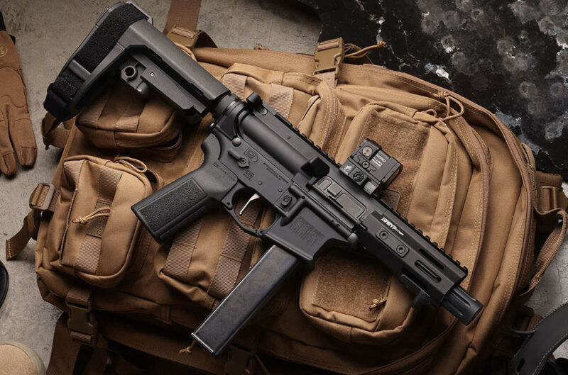 The pistol feeds from the included Colt-pattern, 32-round magazine that interfaces with the pistol’s dedicated 9mm lower. Rounding out the package is an adjustable SB Tactical SBA3 pistol brace on the three-position receiver extension; a B5 Systems polymer trigger guard and B5 Systems Type 23 P-Grip; and a 45-degree, short-throw ambidextrous safety.