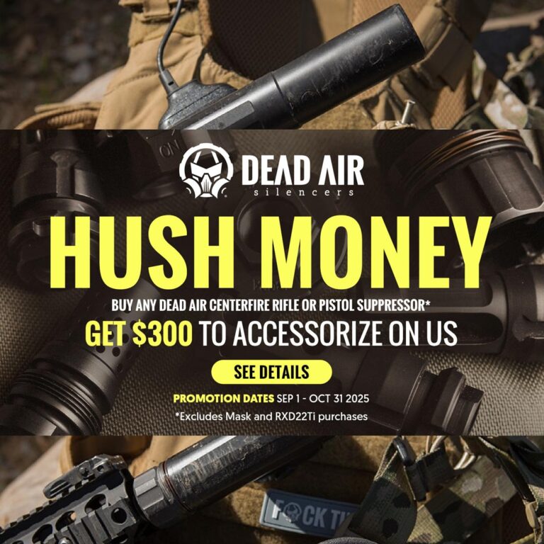 Dead Air Hush Money Rebate 2025 Purchase between September 1, 2025 – October 31, 2025 Submission DEADLINE January 31, 2026 Rebate Form See Rebate Terms Shop Featured Dead Air Suppressors